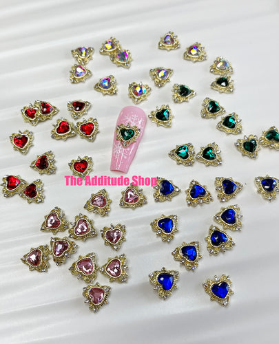 Gold Rim Heart Valentine's Nail 3D Charms Crystals-10 Pieces